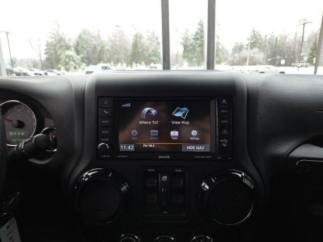 The Wrangler JK Unlimited Sahara also boasts an impressive array of technology and convenience features, such as GPS navigation, a 40GB hard drive with 28GB of available storage, an Alpine 9-speaker audio system with a subwoofer, and Uconnect voice command with Bluetooth®. Stay connected and entertained on every journey.