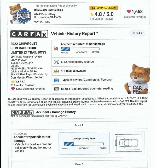 *Aluminum Wheels*, *Backup Camera*, *Bluetooth®*, *Bose High End Sound Package*, *Remote Vehicle Starter*, *Heated Seats*, *Non Smoker*, *Steering Wheel Controls*, *Duramax Diesel*, 10-Way Power Driver Seat w/Lumbar, 12-Volt Rear Auxiliary Power Outlet, 120-Volt Bed Mounted Power Outlet, 120-Volt Instrument Panel Power Outlet, 2 USB Ports, 2 USB Ports (First Row), 220 Amp Alternator, 3.23 Rear Axle Ratio, 4.2 Diagonal Color Display Driver Info Center, 4 Black Round Assist Steps (LPO), 6 Speakers, 6-Speaker Audio System, Advanced Trailering Package, Advanced Trailering System, Air Conditioning, All-Weather Floor Liner (LPO) (AAK), Alloy wheels, AM/FM radio: SiriusXM, Apple CarPlay/Android Auto, Auto-Locking Rear Differential, Automatic temperature control, Auxiliary External Transmission Oil Cooler, Bed Protection Package, Bluetooth® For Phone, Brake assist, Chevrolet Connected Access Capable, Chevytec Spray-On Black Bedliner, Cloth Rear Seat w/Storage Package, Cloth Seat Trim, Color-Keyed Carpeting Floor Covering, Compass, Convenience Package II, Convenience Package w/Buckets Seats, Deep-Tinted Glass, Delay-off headlights, Driver door bin, Driver vanity mirror, Dual Exhaust w/Polished Outlets, Dual-Zone Automatic Climate Control, Electric Rear-Window Defogger, Electronic Cruise Control, Electronic Stability Control, Engine Block Heater, EZ Lift Power Lock & Release Tailgate, Floor Mounted Center Console, Front Bucket Seats, Front Center Armrest, Front dual zone A/C, Front fog lights, Front LED Fog Lamps, Front License Plate Kit, Front reading lights, Fully automatic headlights, HD Rear Vision Camera, Heated door mirrors, Heated Driver & Front Outboard Passenger Seats, Heated front seats, Heated Steering Wheel, Heated steering wheel, Heavy-Duty Air Filter, High Gloss Black Grille, High Gloss Black Mirror Caps, Hill Descent Control, Hitch Guidance, Hitch Guidance w/Hitch View, Illuminated entry, Integrated Trailer Brake Controller, Keyless Open & Start, Leather Wrapped Steering Wheel, LED Cargo Area Lighting, LED Reflector Headlamps, Manual Tilt/Telescoping Steering Column, Off-Road Suspension w/2 Lift, OnStar & Chevrolet Connected Services Capable, Outside temperature display, Overhead console, Panic alarm, Passenger door bin, Passenger vanity mirror, Performance Red Recovery Hooks, Power Door Locks, Power door mirrors, Power driver seat, Power Front Windows w/Driver Express Up/Down, Power Front Windows w/Passenger Express Down, Power Rear Windows w/Express Down, Power Sliding Rear Window w/Rear Defogger, Power steering, Power windows, Preferred Equipment Group 2LT, Premium audio system: Chevrolet Infotainment 3, Premium Bose 7-Speaker Sound System, Radio data system, Radio: Chevrolet Infotainment 3 Plus System, Radio: Chevrolet Infotainment 3 System, Rear Dual USB Charging-Only Ports, Rear reading lights, Rear seat center armrest, Rear step bumper, Rear Vision Camera, Rear Wheelhouse Liners, Rear window defroster, Remote keyless entry, Remote Vehicle Starter System, Security system, SiriusXM Radio, SiriusXM w/360L, Speed control, Split folding rear seat, Standard Tailgate, Steering Wheel Audio Controls, Steering wheel mounted audio controls, Suspension Package, Tachometer, Telescoping steering wheel, Theft Deterrent System (Unauthorized Entry), Tilt steering wheel, Trailering Package, Trip computer, Universal Home Remote, Variably intermittent wipers, Voltmeter, Wheels: 18 x 8.5 Black Painted Aluminum, Wi-Fi Hot Spot Capable, Wireless Phone Projection. We specialize in no hassle pricing. At Don Nester we use a sophisticated computer program to establish the most competitive pricing. Our pricing is based on option content as well as condition and market based pricing. Options and content of actual vehicle may vary from computer generated descriptions. Please call for actual content of desired vehicle. De