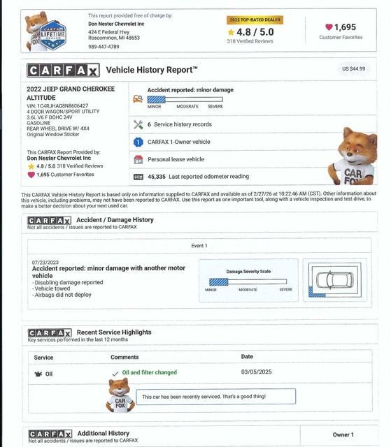 Mileage 45,335