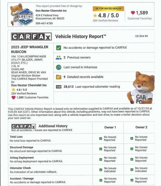 *Aluminum Wheels*, *Backup Camera*, *Bluetooth®*, *Remote Vehicle Starter*, *Navigation System*, *Heated Seats*, *Non Smoker*, *Steering Wheel Controls*, *Clean Carfax*, 240 Amp Alternator, 4.10 Rear Axle Ratio, 7 & 4 Pin Wiring Harness, 700 Amp Maintenance Free Battery, 9 Speakers, Air Conditioning, Alloy wheels, AM/FM radio: SiriusXM, Apple CarPlay/Android Auto, Auto-dimming Rear-View mirror, Automatic temperature control, Auxiliary Battery, Auxiliary Switches, Black 3-Piece Hard Top, Body Color Rubicon Highline Flare, Brake assist, Class II Receiver Hitch, Cold Weather Group, Compass, Daytime Running Lamps LED Accents, Delay-off headlights, Driver door bin, Driver vanity mirror, Electronic Stability Control, Engine Oil Cooler, Freedom Panel Storage Bag, Front Bucket Seats, Front Center Armrest w/Storage, Front dual zone A/C, Front fog lights, Front LED Fog Lamps, Front reading lights, Fully automatic headlights, Garage door transmitter, Heated door mirrors, Heated Front Seats, Heated Steering Wheel, Illuminated entry, Jeep Trail Rated Kit, LED Lighting Group, LED Premium Reflector Headlamps, LED Taillamps, MOPAR All-Weather Floor Mats, MOPAR Doors Off Mirror Kit, MOPAR Satin Black Grille, Navigation System, No Soft Top, Non-Locking Fuel Cap w/o Discriminator, Outside temperature display, Panic alarm, ParkView Rear Back-Up Camera, Passenger door bin, Passenger vanity mirror, Power door mirrors, Power steering, Power windows, Premium Cloth Low-Back Bucket Seats, Quick Order Package 22R Rubicon, Radio data system, Radio: Uconnect 4C Nav w/8.4 Display, Rear reading lights, Rear Window Defroster, Rear Window Wiper/Washer, Remote keyless entry, Remote Start System, Security system, Speed control, Start-Stop Dual Battery System, Steering wheel mounted audio controls, Tachometer, Telescoping steering wheel, Tilt steering wheel, Trailer Tow & Aux Switch Group, Trip computer, Variably intermittent wipers, Voltmeter, Wheels: 17 x 7.5 Machined w/Black Pockets, Wheels: 17 x 7.5 Machined/Painted Black. Clean CARFAX. We specialize in no hassle pricing. At Don Nester we use a sophisticated computer program to establish the most competitive pricing. Our pricing is based on option content as well as condition and market based pricing. Options and content of actual vehicle may vary from computer generated descriptions. Please call for actual content of desired vehicle. Dealer not responsible for errors or emissions in computer generated description.